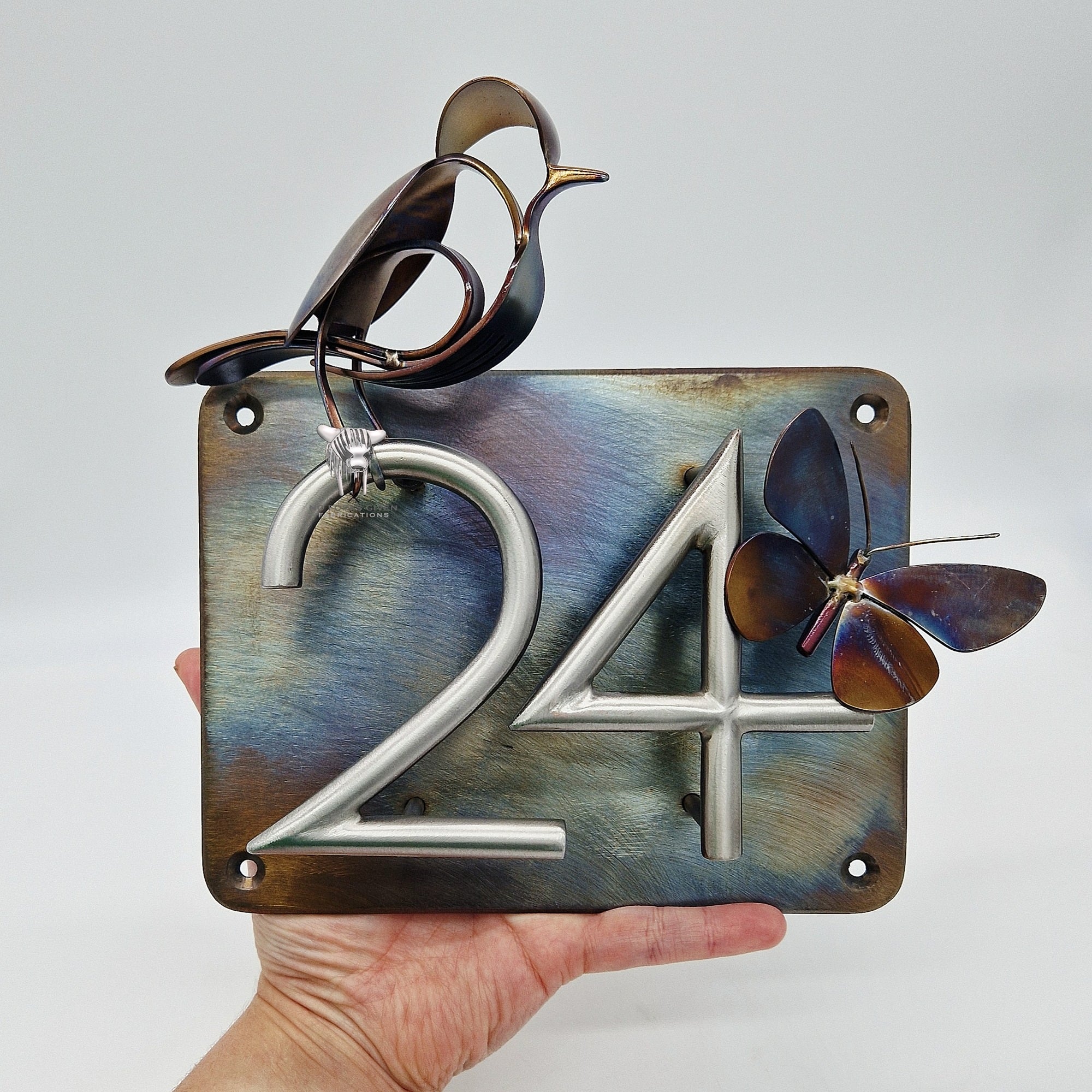 Hand-crafted, original, modern artwork created by Jem and Neil Young of No Forks Given Fabrications (TM). A wife and husband small business team.